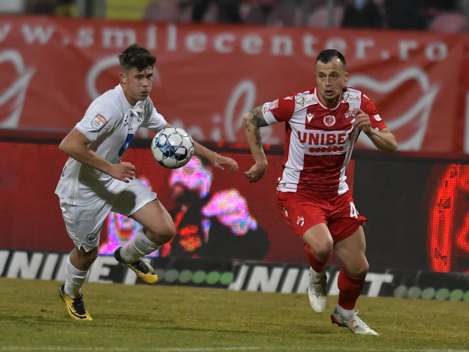 Cristian Maxim si Mirko Ivanovski in meciul de fotbal dintre Dinamo Bucuresti si Gaz Metan Medias, contand pentru Liga 1 Casa Pariurilor, desfasurat pe Stadionul Dinamo din Bucuresti, vineri 18 februarie 2022. © FOTO:Razvan Pasarica/SPORT PICTURES