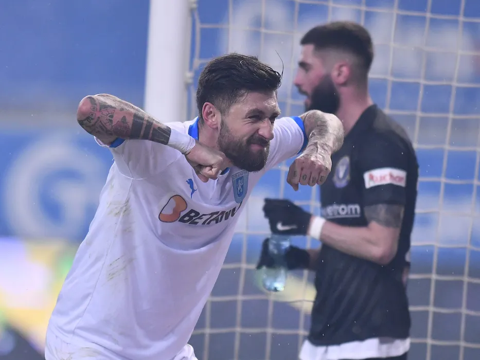 Paul Papp se bucura dupa un gol marcat in meciul de fotbal dintre Universitatea Craiova si Viitorul Constanta, contand pentru Liga 1 Casa Pariurilor, desfasurat fara spectatori pe Stadionul Ion Oblemenco din Craiova, sambata 23 ianuarie 2021. © FOTO:Razvan Pasarica/SPORT PICTURES