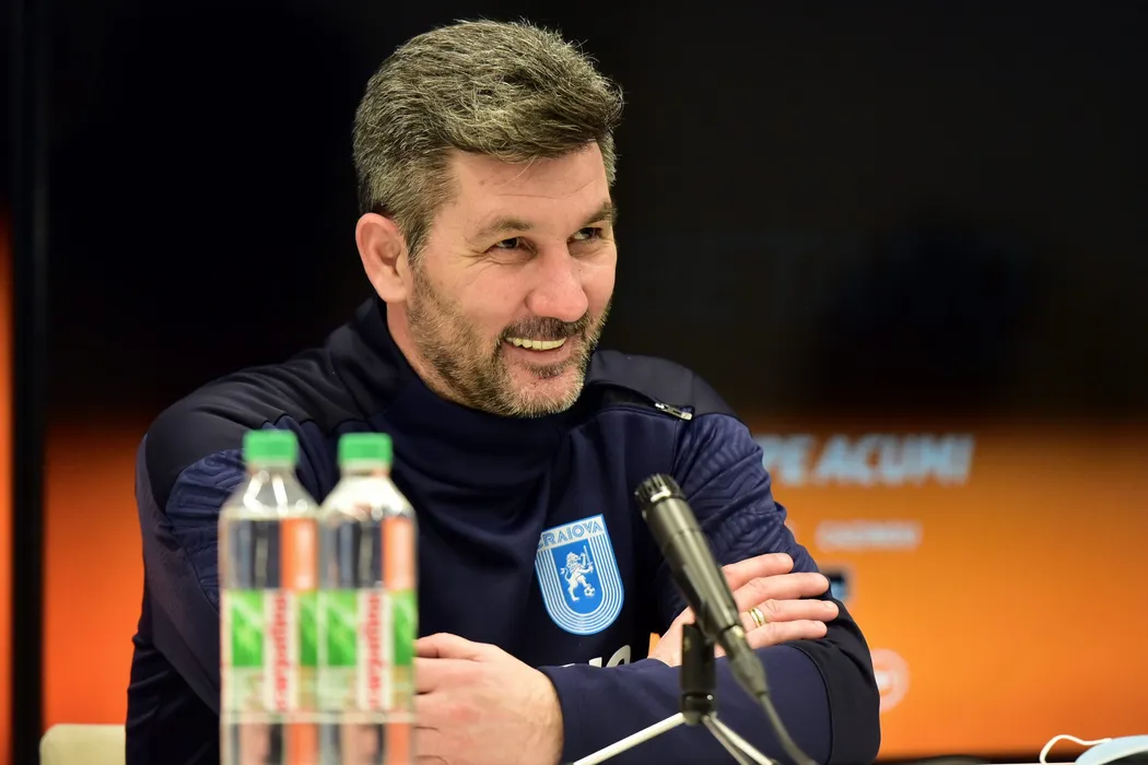 Marinos Ouzounidis antrenorul echipei de fotbal U Craiova sustine o conferinta de presa la stadionul Ion Oblemenco din Craiova , marti 09 februarie 2021 . REMUS BADEA / MEDIAFAX FOTO