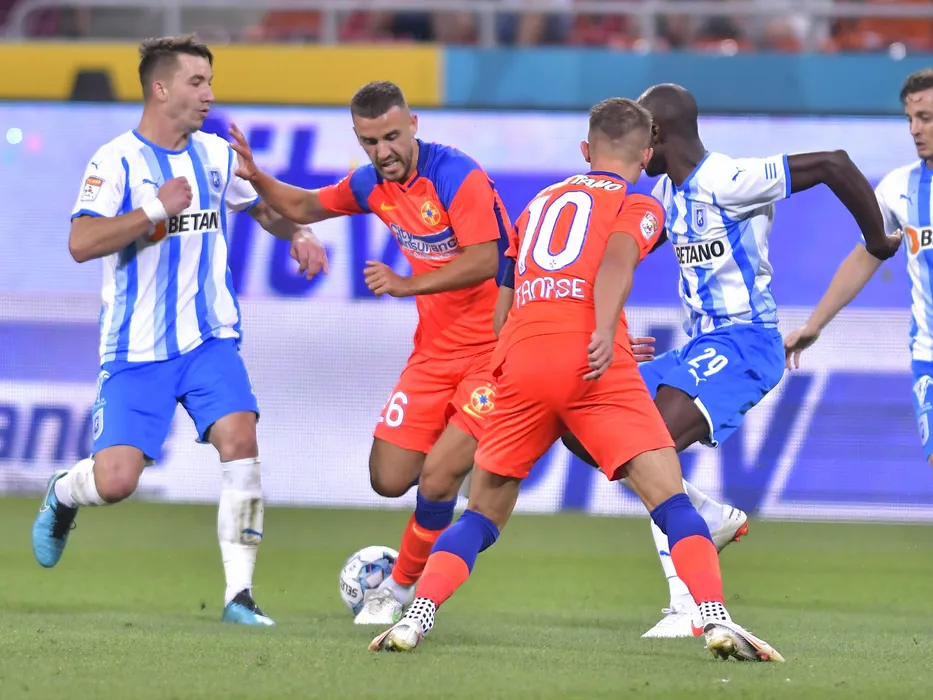 Alexandru Mateiu si Razvan Constantin Oaida in meciul de fotbal dintre FCSB si Universitatea Craiova, contand pentru Liga 1 Casa Pariurilor, desfasurat pe Arena Nationala din Bucuresti, duminica 25 iulie 2021. © FOTO:Razvan Pasarica/SPORT PICTURES
