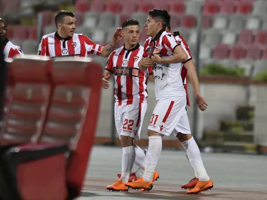 Bucurie dinamovista cu Dan Nistor,Gabriel Torje si Robert Moldoveanu in meciul de fotbal dintre Dinamo Bucuresti si ACS Politehnica Timisoara, in cadrul play out-ului Ligii 1 Betano, desfasurat pe Stadionul Dinamo din Bucuresti, vineri 20 aprilie 2018. © FOTO Razvan Pasarica/SPORT PICTURES