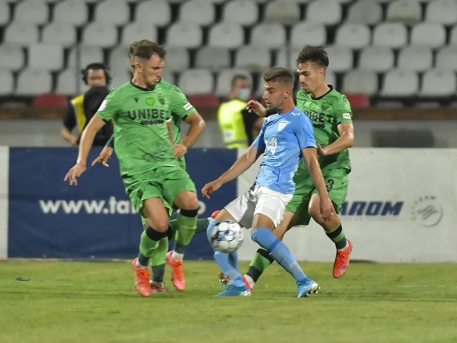 Deian Cristian Sorescu, Robert Andrei Ion si Andrei Radu in meciul de fotbal dintre Dinamo Bucuresti si FC Voluntari, contand pentru Liga 1 Casa Pariurilor, desfasurat pe Stadionul Dinamo din Bucuresti, luni 19 iulie 2021. © FOTO:Razvan Pasarica/SPORT PICTURES