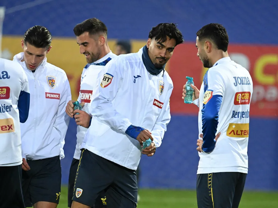 Fotbalistii romani Alexandru Dobre, Marius Coman, Stefan Baiaram si Vladimir Screciu la un antrenament efectuat inaintea meciului de baraj cu Turcia pentru Campionatul Mondial din 2026, desfasurat la Centrul National de Fotbal de la Mogosoaia, duminica 22 martie 2026. © FOTO:Razvan Pasarica/SPORT PICTURES