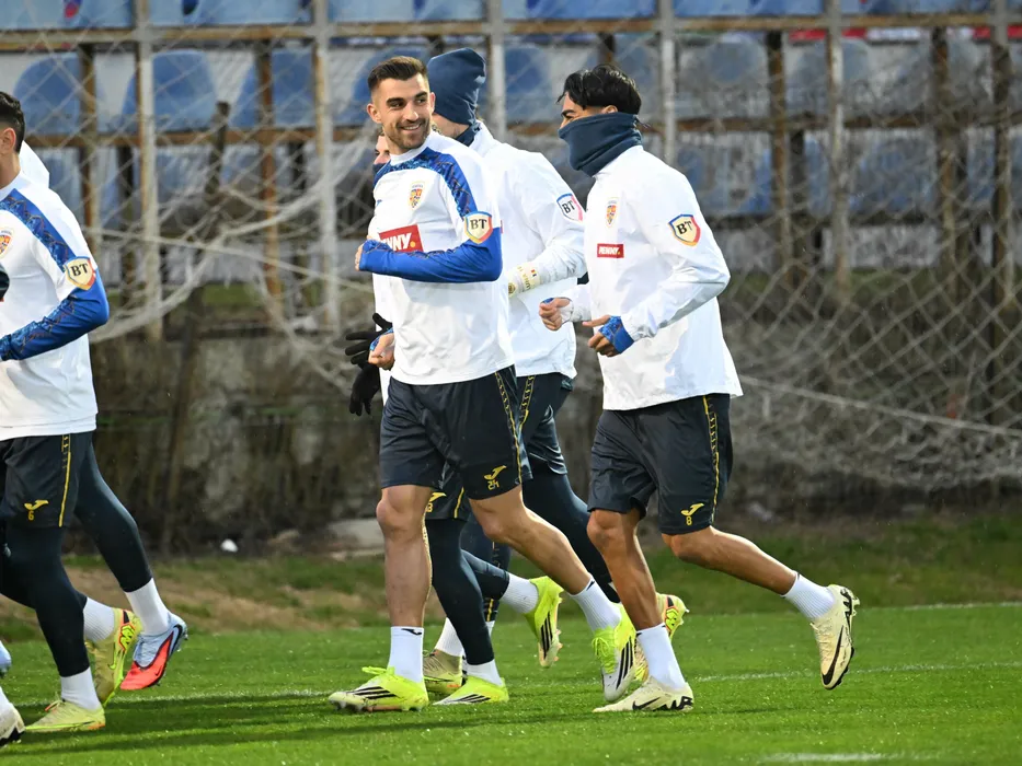 Fotbalistii romani Marius Coman si Stefan Baiaram la un antrenament efectuat inaintea meciului de baraj cu Turcia pentru Campionatul Mondial din 2026, desfasurat la Centrul National de Fotbal de la Mogosoaia, duminica 22 martie 2026. © FOTO:Razvan Pasarica/SPORT PICTURES