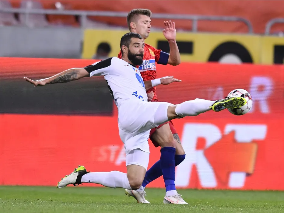 Marius Marcel Constantin si Florin Tanase in meciul de fotbal dintre FCSB si Gaz Metan Medias, contand pentru play-off-ul Ligii 1 Casa Pariurilor, disputat fara spectatori pe Arena Nationala din Bucuresti, duminica 21 iunie 2020. © FOTO:Razvan Pasarica/SPORT PICTURES