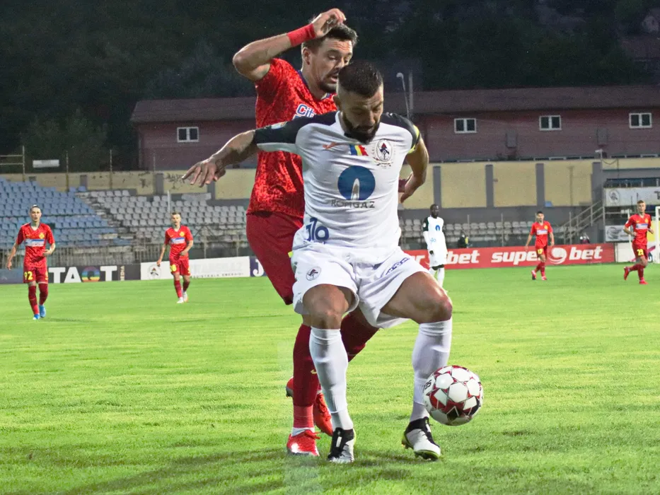 Adrian Petre si marius Constantin in meciul de fotbal dintre Gaz Metan Medias si FCSB din etapa 9 a play-off-ului Ligii 1 Casa Pariurilor, disputat pe stadionul Gaz Metan din Medias, sambata, 25 iulie 2020.© FOTO:Macrea Valentin/Sport Pictures