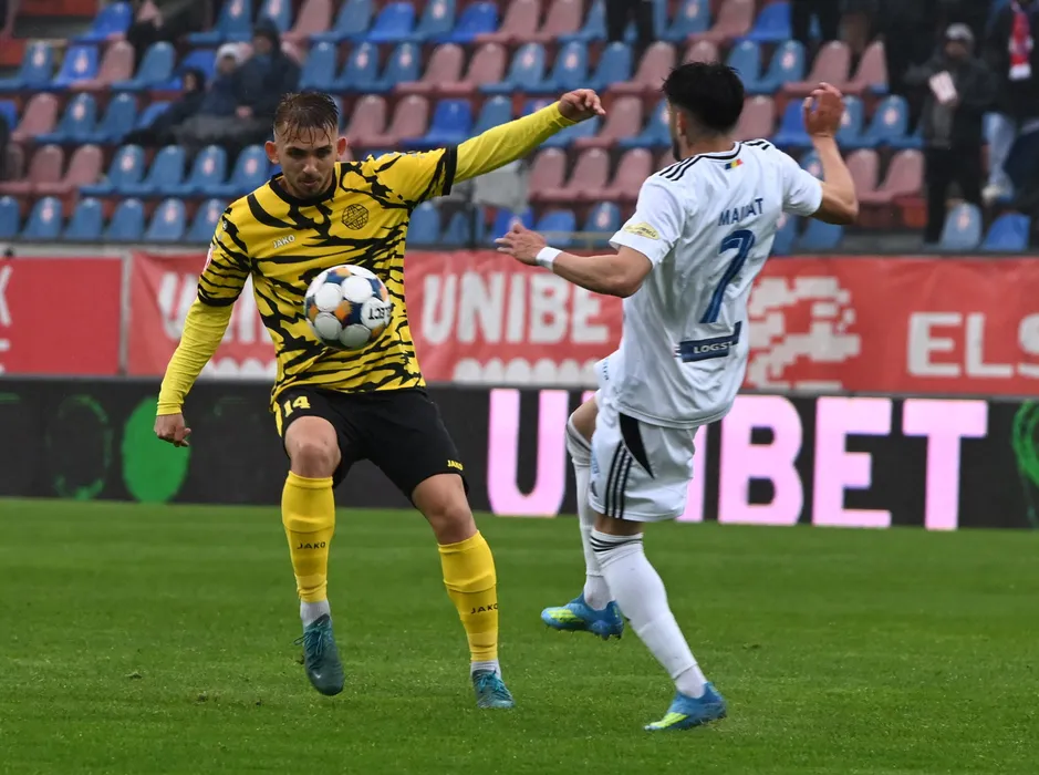 Alexandru Gheorghe si Arpad Sebastian Mailat in meciul de fotbal dintre FC Botosani si FC Metaloglobus Bucuresti, contand pentru Superliga Superbet Play-Out, desfasurat pe Stadionul Municipal din Botosani, luni 20 aprilie 2026. © FOTO:Tudy/SPORT PICTURES