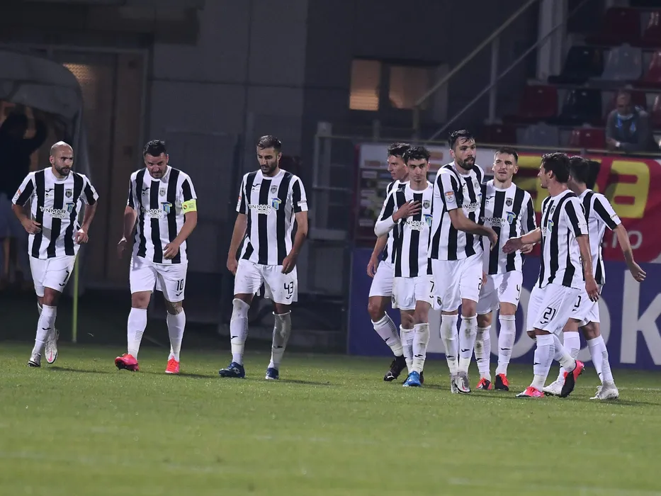 Valerica Marius Gaman se bucura dupa un gol marcat alaturi de Dario Canadija, Constantin Valentin Budescu, Mattia Montini, Risto Radunovic, Albert Tivadar Stahl, Daniel Graovac si Ljubjan Crepulja in meciul de fotbal dintre Astra Giurgiu si CSM Politehnica Iasi, contand pentru Liga 1 Casa Pariurilor, desfasurat fara spectatori pe Stadionul Marin Anastasovici din Giurgiu, sambata 24 octombrie 2020. © FOTO:Razvan Pasarica/SPORT PICTURES