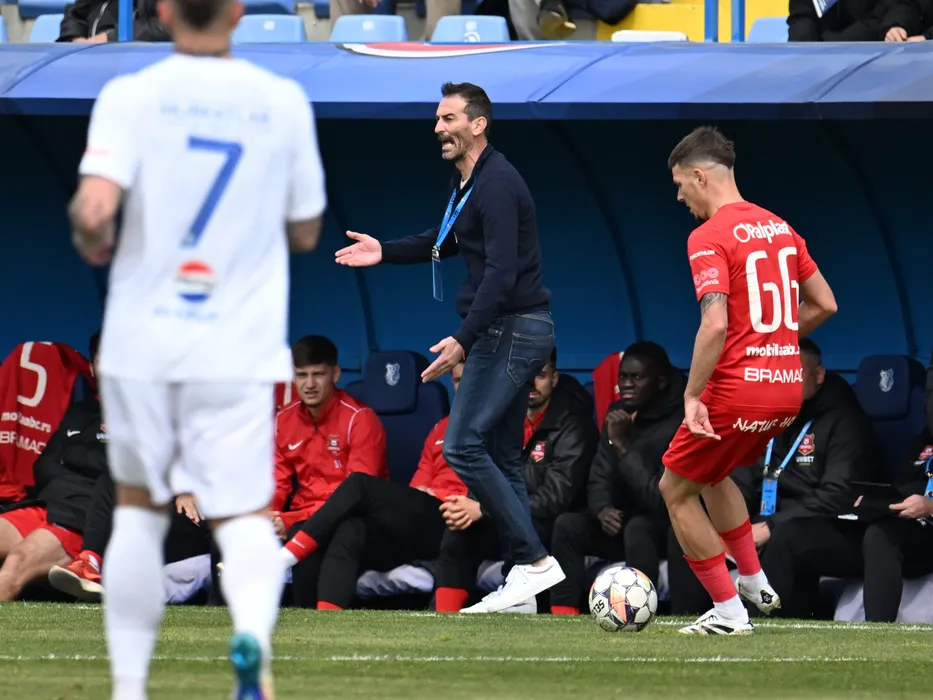 Marius Măldărașanu reacționează in meciul de fotbal dintre Farul Constanta si FC Hermannstadt, contand pentru Play out-ului Superligii Superbet, desfasurat pe Stadionul central al Academiei Gheorghe Hagi din Ovidiu, sambata 19 aprilie 2025. © FOTO:Razvan Pasarica/SPORT PICTURES