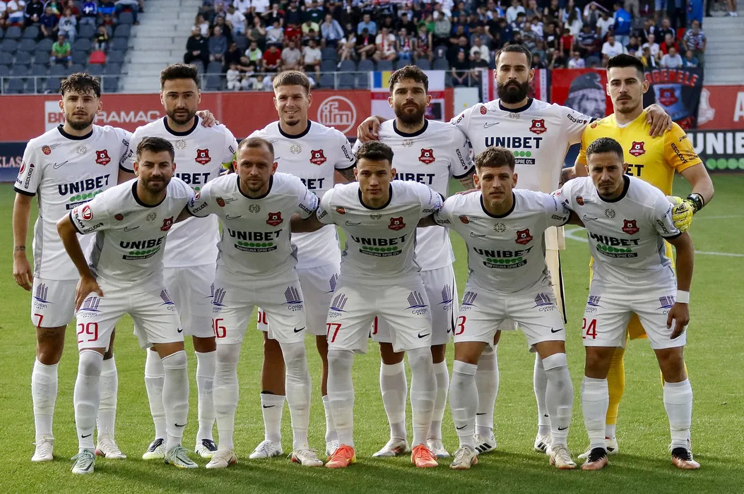 Fotbalistii sibieni la o fotografie de grup realizata inaintea meciului de fotbal dintre AFC Hermannstadt Sibiu si FC Metaloglobus Bucuresti, contand pentru Superliga Superbet, desfasurat pe Stadionul Municipal din Sibiu, vineri 18 iulie 2025. © FOTO:Valentin Macrea/SPORT PICTURES