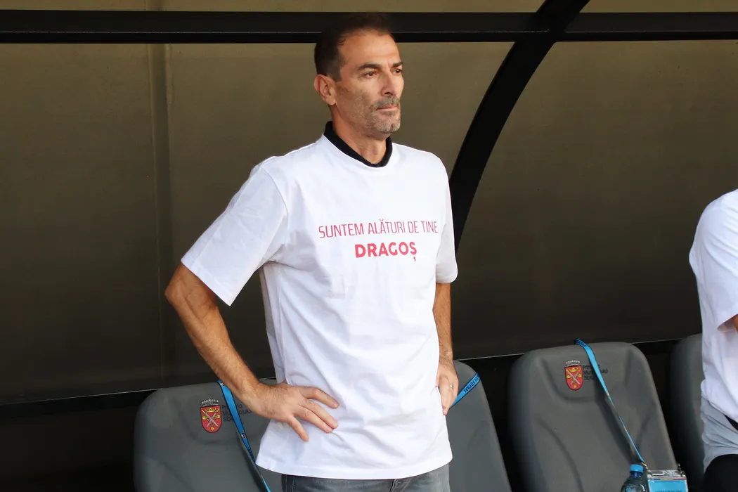 Marius Maldarasanu aratundu-si sutinerea pentru Dragos Iancu in meciul de fotbal dintre AFS HERMANNSTADT SIBIU si SEPSI OSK SFANTU GHEORGHE contand pentru CUPA ROMANIEI BETANO, desfasurat pe Stadionul Municipal din Sibiu, miercuri 27 septembrie 2023. © FOTO: Valentin MACREA/SPORT PICTURES