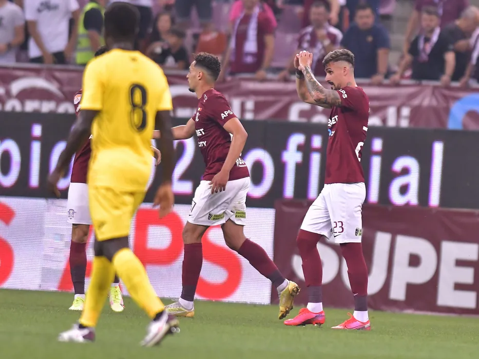 Alexandru Cristian Albu se bucura dupa un gol marcat in meciul de fotbal dintre Rapid Bucuresti si Gaz Metan Medias, contand pentru Liga 1 Casa Pariurilor, desfasurat pe Arena Nationala din Bucuresti, vineri 17 septembrie 2021. © FOTO:Razvan Pasarica/SPORT PICTURES