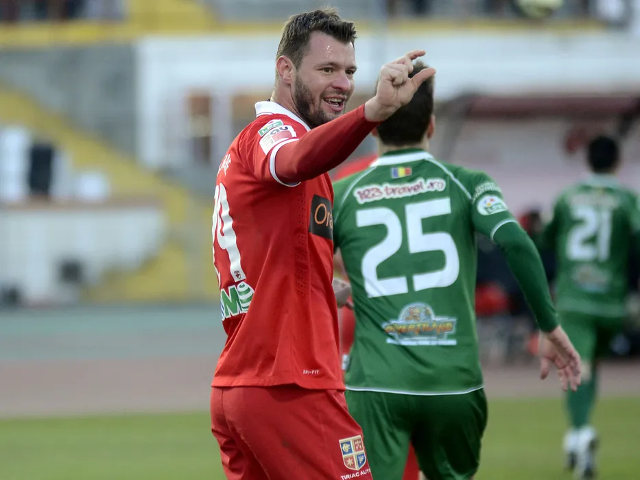 Marius Niculae ii spune unui coechipier sa centreze putin mai jos.