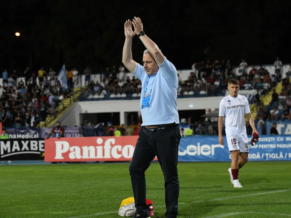 Marius Șumudică salută galeira la startul meciului de fotbal dintre Poli Iași si FC Rapid 1923 București, contând pentru SuperLiga Superbet, desfășurat pe Stadionul Emil Alexandrescu din Iași, vineri 23 august 2024. © FOTO: Tudi/SPORT PICTURES