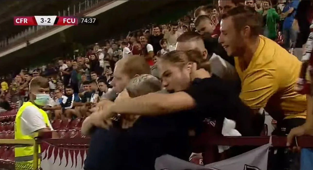 Marius Șumudică, imagini senzaționale! Un suporter l-a pupat pe antrenor, după golul lui Claudiu Petrila din CFR Cluj – FC U Craiova | FOTO