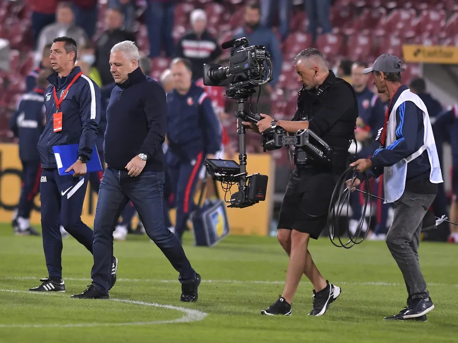 Gabriel Margarit si Marius Sumudica suparati dupa meciul de fotbal dintre CFR Cluj si Steaua Rosie Belgrad, contand pentru Play-off-ul UEFA Europa League, desfasurat pe Stadionul Dr. Constantin Radulescu din Cluj Napoca, joi 26 august 2021. © FOTO:Razvan Pasarica/SPORT PICTURES