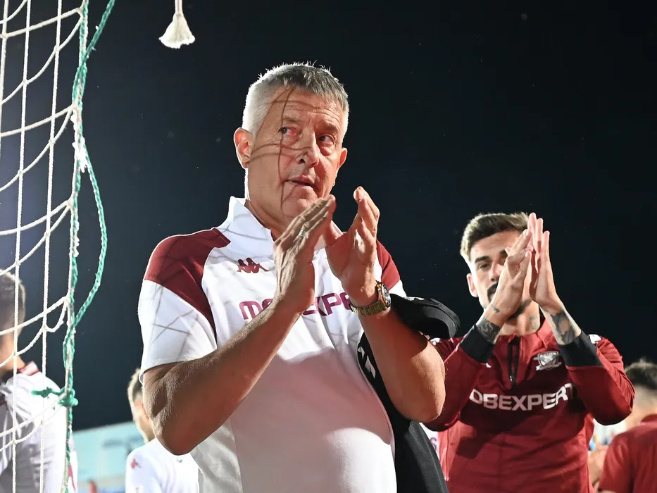 Cristiano Bergodi aplauda galeria dupa meciul de fotbal dintre FC Voluntari si Rapid Bucuresti, din cadrul Superligii Superbet, desfasurat pe Stadionul Anghel Iordanescu din Voluntari, luni 7 august 2023. © FOTO:Razvan Pasarica/SPORT PICTURES