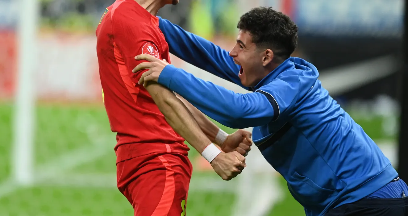 Adrian Gheorghe Sut se bucura dupa un gol anulat marcat alaturi de un copil de mingi in meciul de fotbal dintre FCSB si Rapid Bucuresti, din cadrul Superligii Superbet, desfasurat pe Arena Nationala din Bucuresti, duminica 5 noiembrie 2023. © FOTO:Razvan Pasarica/SPORT PICTURES