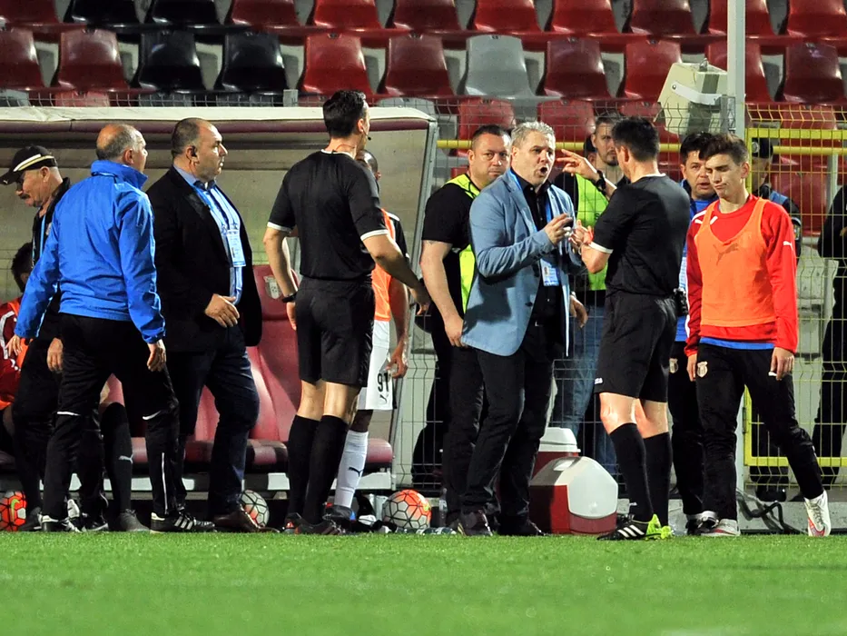 Marius Sumudica in discutii cu arbitrul central Cristi Balaj