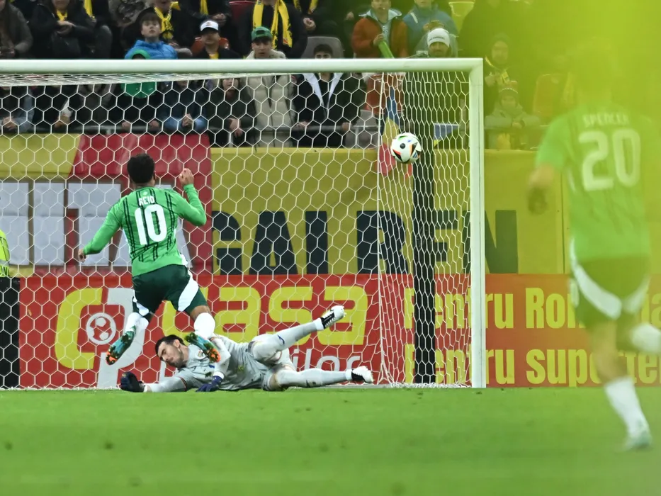 Jamie Reid marcheaza un gol in poarta lui Florin Nita in meciul amical de fotbal dintre Romania si Irlanda de Nord, desfasurat pe Arena Nationala, vineri 22 martie 2024. © FOTO:Razvan Pasarica/SPORT PICTURES