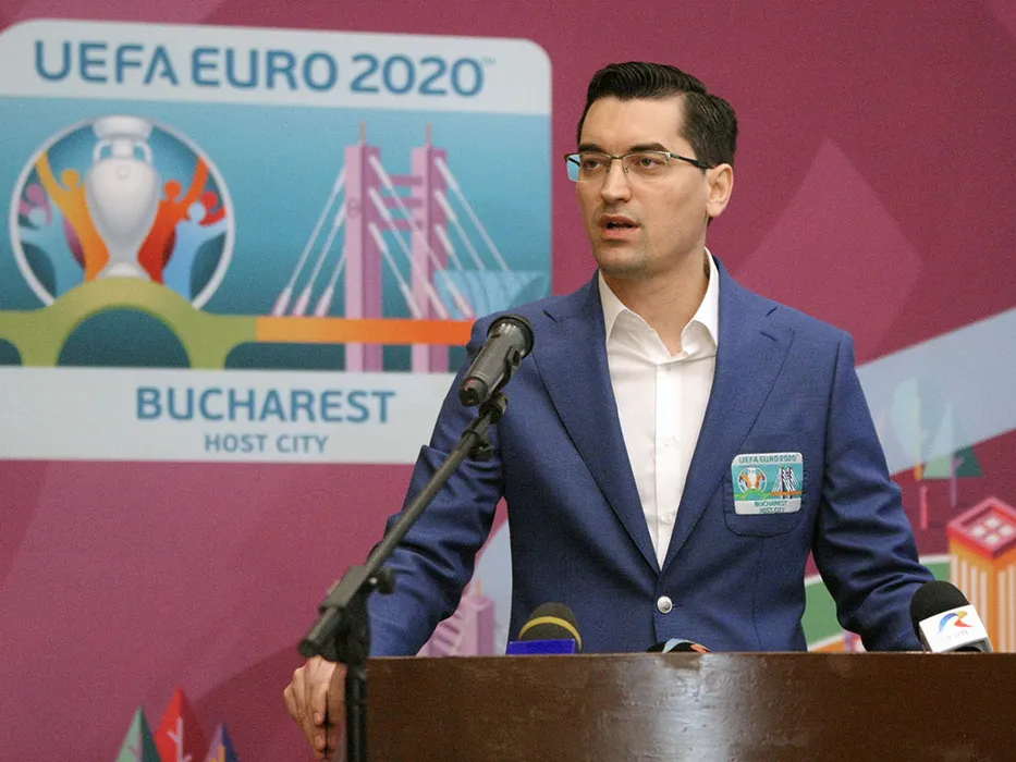 Presedinte Federatiei Romane de Fotbal (FRF), Razvan Burleanu, participa la o conferinta de presa privind organizarea UEFA EURO 2020, marti, 26 martie 2019, la Cluj-Napoca. PAUL URSACHI / MEDIAFAX FOTO