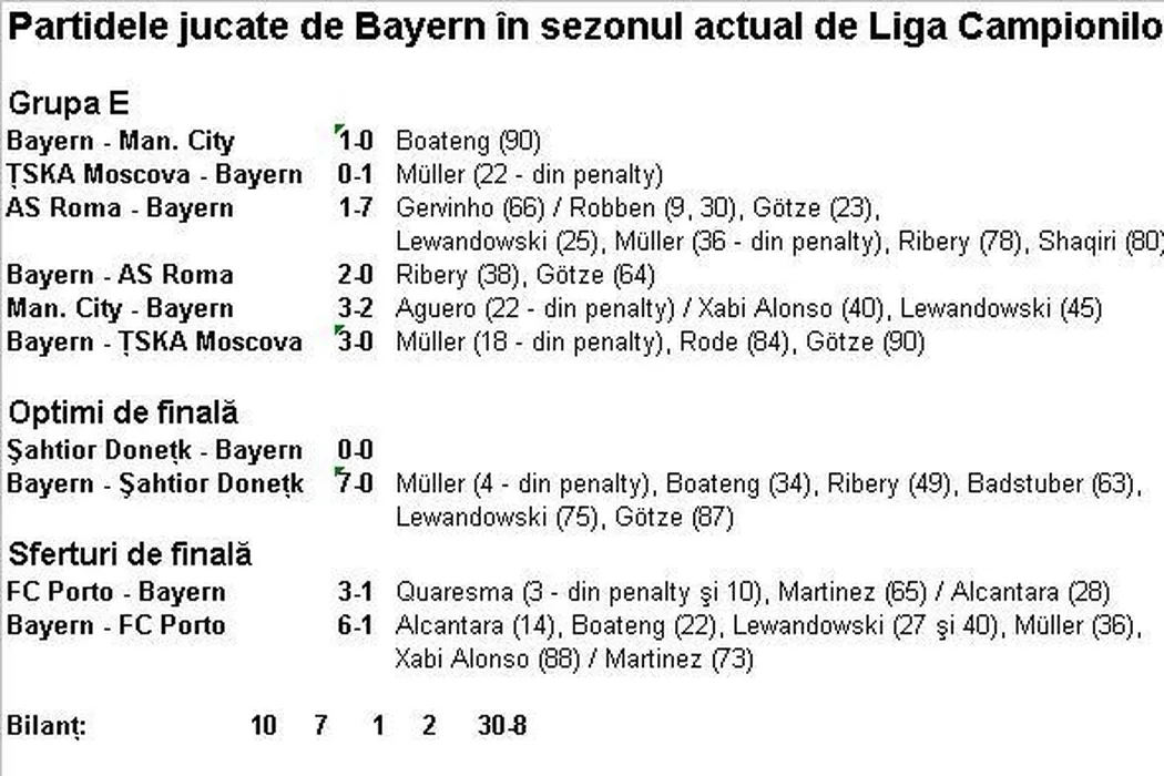 Mașinăria infernală: Bayern a dat deja 30 de goluri în Liga Campionilor. Lucescu rămâne singurul antrenor care a reușit să-i oprească pe nemți într-un meci. Topul ofensivelor din Ligă și unde s-a oprit ultima echipă care a mizat pe apărare