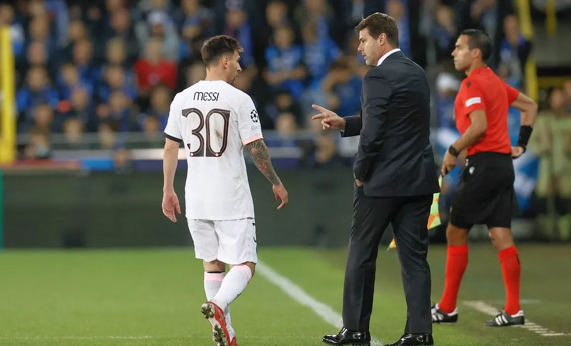 September 15, 2021, BRUGGE, BELGIUM: PSG's Lionel Messi and PSG's head coach Mauricio Pochettino pictured during a game between Belgian soccer team Club Brugge and French club PSG Paris Saint-Germain, Wednesday 15 September 2021, in Brugge, on the first day (out of six) in the Group A of the UEFA Champions League group stage.,Image: 632345693, License: Rights-managed, Restrictions: * Belgium, France, Germany, Luxembourg and Netherlands Rights OUT *, Model Release: no, Credit line: Profimedia
