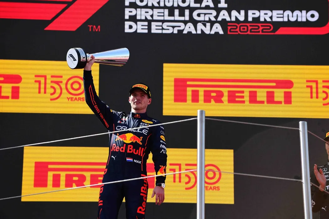 Max Verstappen of Red Bull Racing Honda celebrating during podium ceremony during Spanish Grand Prix in Circuit de Catalunya in Montmelo, Barcelona, Catalunia, Spain, 22 May 2022
