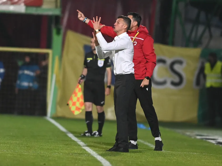 Ovidiu Burca reactioneaza in meciul de fotbal dintre FC Arges si Dinamo Bucuresti, contand pentru mansa retur a Barajului pentru mentinerea in Superliga Superbet, desfasurat pe Stadionul Orasenesc din Mioveni, sambata 3 iunie 2023. © FOTO:Razvan Pasarica/SPORT PICTURES