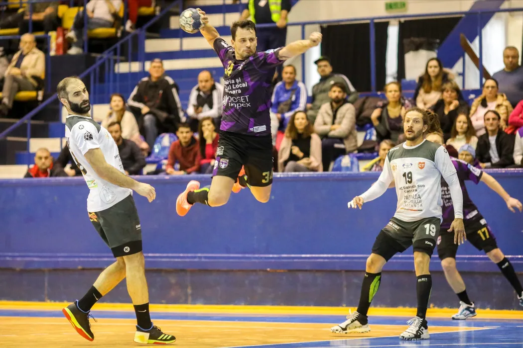Meciul de handbal dintre SCM Politehnica Timisoara si HC Dobgrogea Sud Constanta, contand pentru etapa a 22-a din Liga Nationala, disputat duminica, 8 martie 2020, la sala Constantin Jude din Timisoara. Sebastian Tataru / MEDIAFAX FOTO