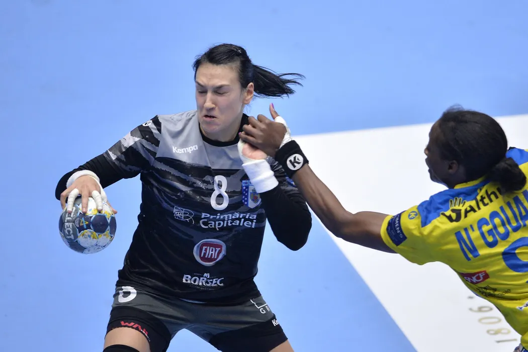 Cristina Neagu (S), de la CSM Bucuresti, lupta sa inscrie, in timpul meciului de handbal feminin contra echipei Metz din Liga Campionilor, disputat la Sala Polivalenta din Bucuresti, duminica, 2 februarie 2020. ALEXANDRRU DOBRE/ MEDIAFAX FOTO