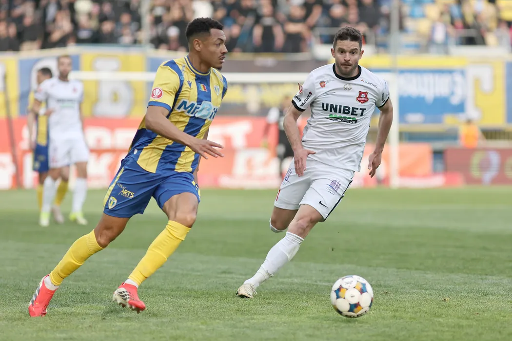 Cedric Benjamin Roche Yohan si Sergiu Florin Bus in meciul de fotbal dintre FC Petrolul Ploiesti si AFC Hermannstadt Sibiu, contand pentru Superliga Superbet Play-Out, desfasurat pe Stadionul Ilie Oana din Ploiesti, duminica 19 aprilie 2026. © FOTO:Gheroghe Fluster/SPORT PICTURES
