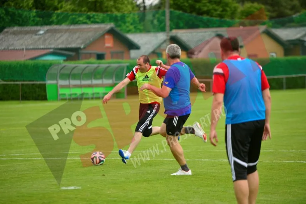 Membrii Comitetului Executiv al FRF au jucat fotbal în Elveția. Răzvan Burleanu, printre remarcații partidei întrerupte brusc de ploaie: gol din pasa lui „Tata Puiu”