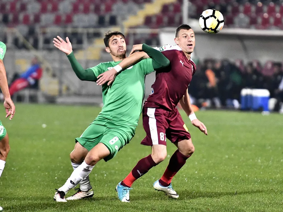 Razvan Gradinaru si Florin Acsinte in meciul de fotbal dintre FC Voluntari si Concordia Chiajna, din cadrul Ligii 1 Betano, desfasurat pe stadionul Marin Anastasovici din Giurgiu, luni 2 octombrie 2017. © FOTO Razvan Pasarica/SPORT PICTURES