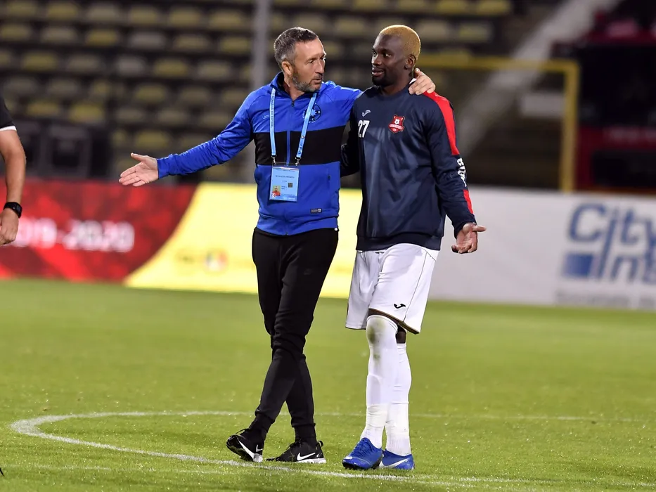 Mihai Stoica si Gabriel Debeljuh dupa meciul de fotbal dintre FCSB si AFC Hermannstadt, din cadrul Ligii 1 Casa Pariurilor, desfasurat pe Stadionul Nicolae Dobrin din Pitesti, duminica 14 iulie 2019. © FOTO:Razvan Pasarica/SPORT PICTURES