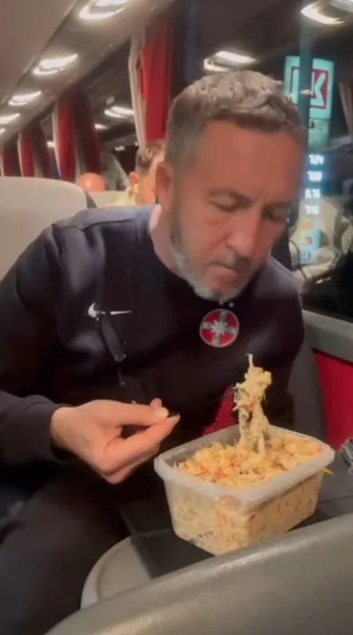 Meme Stoica mănâncă salată boeuf cu rama de la ochelari! Cum a sărbătorit oficialul FCSB victoria de la Craiova, alături de antrenorii Elias Charalambous și Mihai Pintilii