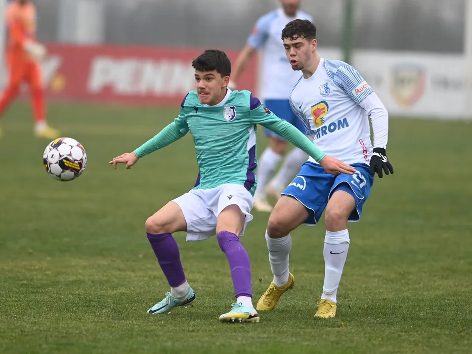 Yanis Pirvu si Sebastian Andrei Borza in meciul amical de fotbal dintre Farul Constanta si FC Arges, desfasurat pe terenul de iarba de la Centrul National de Fotbal de la Buftea, marti 10 ianuarue 2023. © FOTO:Razvan Pasarica/SPORT PICTURES