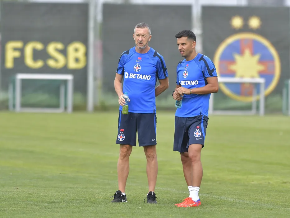 Fotbalistii stelisti Mihai Stoica si Nicolae Dica la antrenamentul oficial de dinaintea meciului impotriva celor de la FC Dunajska Streda, din cadrul UEFA Europa Conference League, desfasurat la Baza de antrenament FCSB din Berceni, miercuri 10 august 2022. © FOTO:Razvan Pasarica/SPORT PICTURES