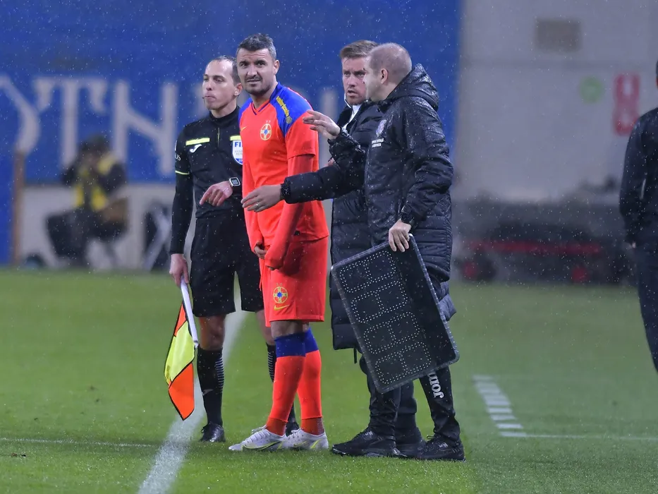 Constantin Valentin Budescu si Mihai Pintilii la schimbare in meciul de fotbal dintre Universitatea Craiova si FCSB, contand pentru Liga 1 Casa Pariurilor, desfasurat pe Stadionul Ion Oblemenco din Craiova, duminica 28 noiembrie 2021. © FOTO:Razvan Pasarica/SPORT PICTURES
