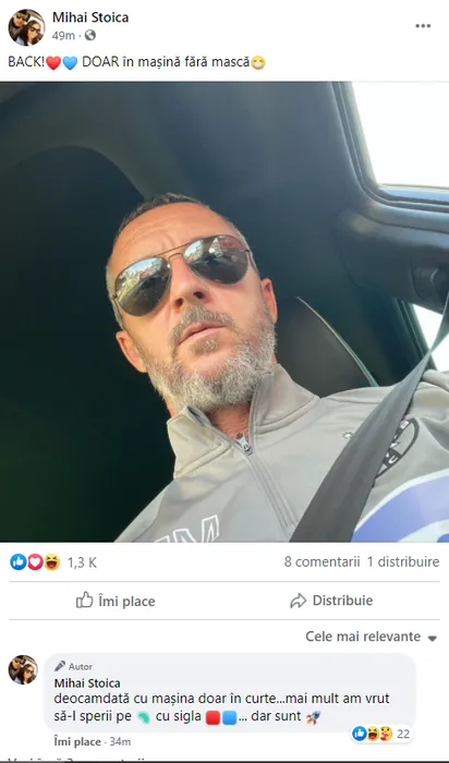 Meme Stoica, prima apariție după ce s-a vindecat de COVID-19. „Cu mașina doar în curte!” Ochelarii l-au dat de gol pe oficialul FCSB | FOTO