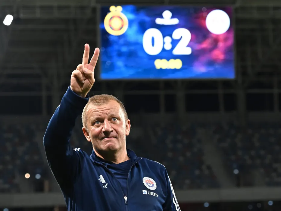 Dorinel Ionel Munteanu saluta galeria, alături de tabela de marcaj, dupa meciul dintre FCSB si Otelul Galati, contand pentru Superliga Superbet, desfasurat pe Stadionul Steaua-Ghencea din Bucuresti, vineri 26 iulie 2024. © FOTO:Razvan Pasarica/SPORT PICTURES