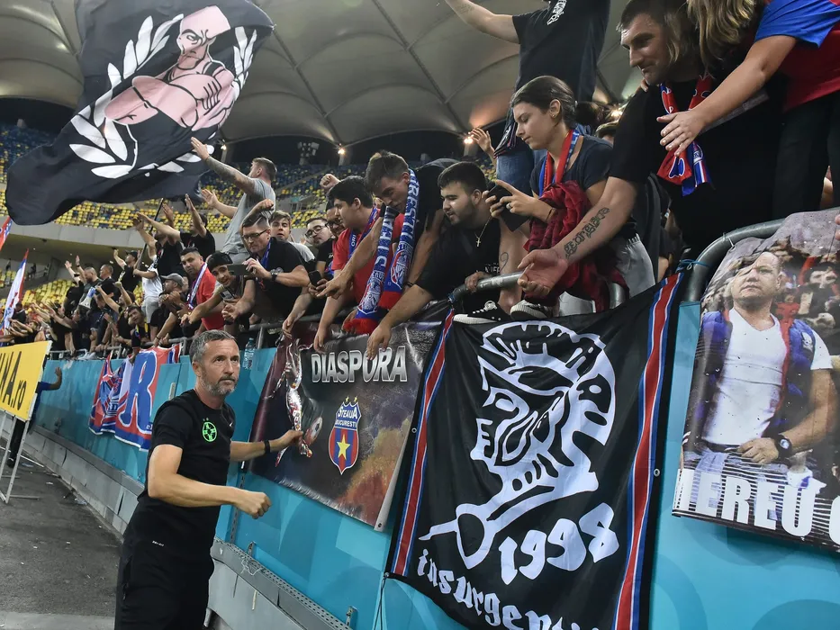 Mihai Stoica saluta galeria stelista dupa meciul de fotbal dintre FCSB si Sepsi OSK Sfantu Gheorghe, contand pentru Liga 1 Casa Pariurilor, desfasurat pe Arena Nationala din Bucuresti, luni 23 august 2021. © FOTO:Razvan Pasarica/SPORT PICTURES