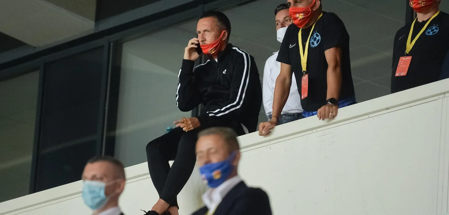 Mihai Stoica (S) urmareste festivitatea de premiere a formatiei FCSB la finalul meciului de fotbal contra echipei Sepsi OSK din finala Cupei Romaniei, disputat pe stadionul Ilie Oana din Ploiesti, miercuri, 22 iulie 2020. FCSB a cucerit Cupa Romaniei dupa ce a invins-o pe Sepsi, scor 1-0, in finala de la Ploiesti. Dennis Man a inscris unicul gol al partidei. ALEXANDRU DOBRE / MEDIAFAX FOTO