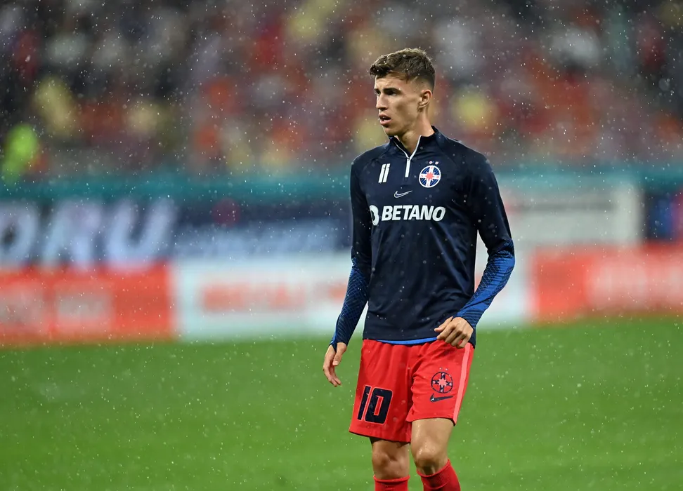 Octavian Popescu, de la FCSB, reactioneaza in timpul meciului de fotbal contra echipei AFC Chindia Targoviste din etapa a V-a a Superligii, disputat pe Arena Nationala din Bucuresti, duminica, 14 august 2022. EDUARD VINATORU / MEDIAFAX FOTO