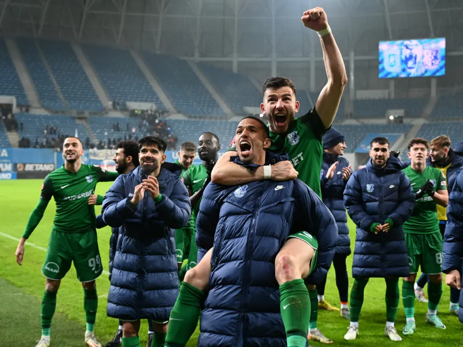 Fotbalistii constanteni Ionuț Daniel Vână, Rivaldinho (Mosca Rivaldo Vitor Ferreira) si Mihai Popescu saluta galeria dupa meciul de fotbal dintre Universitatea Craiova si Farul Constanta, contând pentru Superliga Superbet, desfășurat pe Stadionul Ion Oblemenco din Craiova, duminica 21 ianuarie 2024. © FOTO: Răzvan PĂSĂRICĂ/SPORT PICTURES