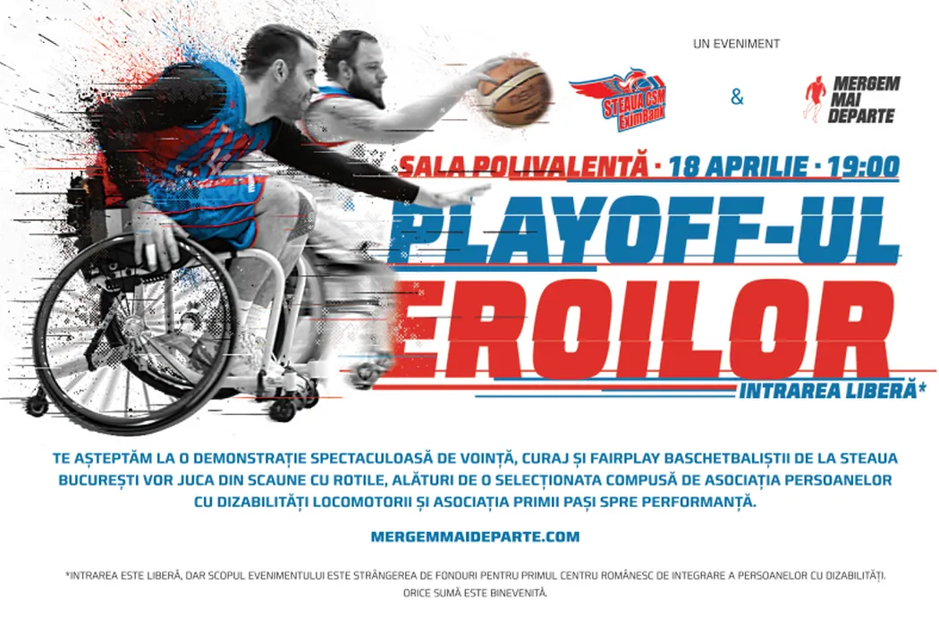 „Mergem mai departe”. Jucătorii Stelei, alături de un proiect special: un meci de baschet în scop caritabil, luni de la ora 19:00 la Sala Polivalentă