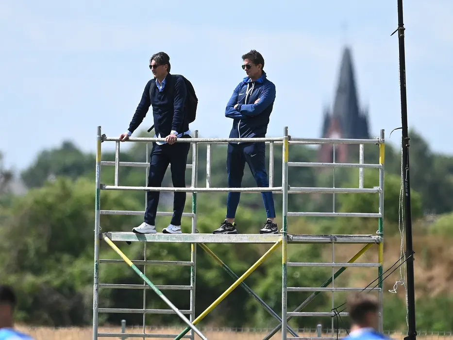 Zoltan Iasko si Gica Popescu asista la meciul amical de fotbal dintre Banik Ostrava si Farul Constanta, desfasurat la Baza de pregatire de pe langa hotelul Remes din Opalenica, Polonia, duminica 2 iulie 2023. © FOTO:Razvan Pasarica/SPORT PICTURES