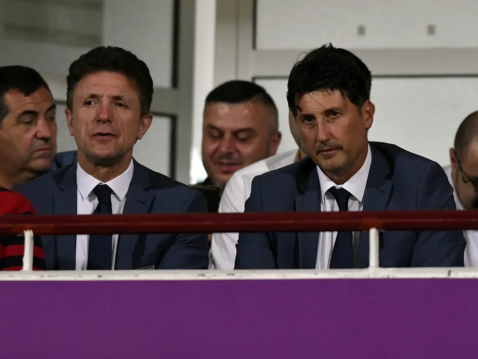 Gica Popescu si Zoli Iasko in tribuna la meciul de fotbal dintre FCSB si FC Viitorul, contand pentru Liga 1 Casa Pariurilor, desfasurat pe Stadionul Nicolae Dobrin din Pitesti, duminica 1 septembrie 2019. © FOTO:Razvan Pasarica/SPORT PICTURES