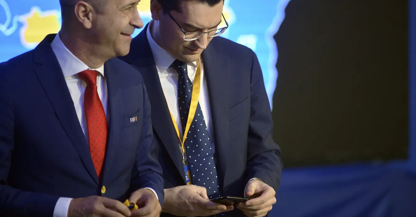 Presedintele FRF, Razvan Burleanu (C) si Gabi Bodescu participa la Adunarea Generala a Federatiei Romane de Fotbal (FRF), miercuri 17 aprilie 2019, la sediul FRF din Bucuresti/ MARIAN ILIE / MEDIAFAX FOTO