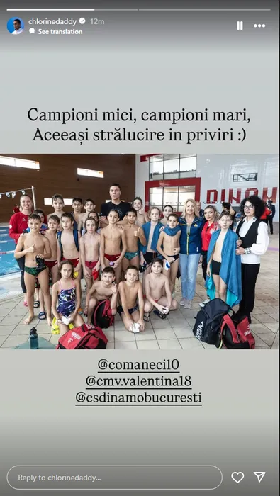 Mesajul din 8 cuvinte pe care David Popovici l-a postat după întâlnirea cu Nadia Comăneci